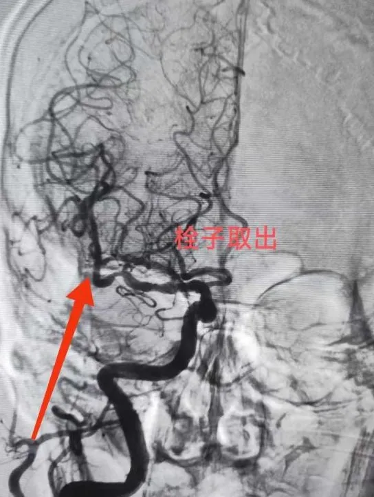 接诊的神经内科副主任于弋水迅速判断为急性脑卒中,到达医院时,距离患者发病刚刚过去一个多小时。急诊立即启动卒中救治绿色绿道——神经内科、急诊科、医学影像科、介入治疗室、检验科等多团队同步联动,半小时内经过快速的神经功能评估、完善颅脑磁共振等相关检查,确诊为右侧大脑中动脉闭塞导致的急性脑梗死。这意味着,通往大脑生命中枢的“主干道”被血栓死死堵住,大脑正因缺血缺氧而迅速受损。传统的静脉溶栓虽然有效,但对于患者有房颤病史,长期服用抗凝药物,属于溶栓禁忌,动脉机械取栓是唯一生机。