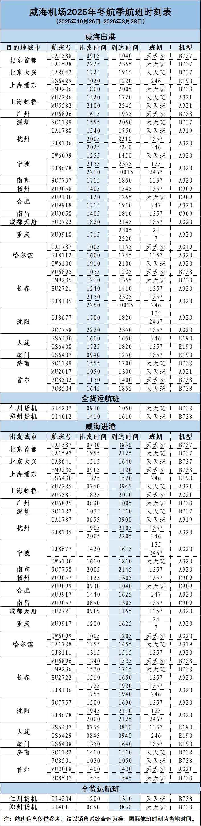 厦门、扬州为威海机场冬航季新增航点,航班班期均为每周1.3.5.7。两条航线的开通,为威海与福建、江苏等地搭建起高效、便捷的空中通道,对促进区域间的经贸、文化、旅游等各领域交流、推动城市间友好往来起到积极作用。