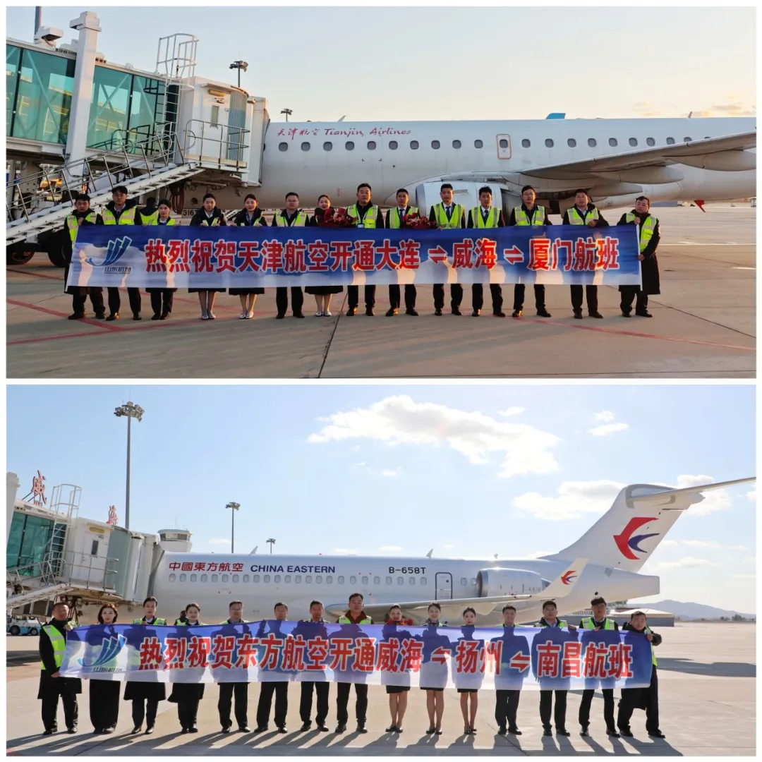 11月2日,威海机场迎来大连-威海-厦门、威海-扬州-南昌2条新航线的成功首航,首发航班平均客座率达到90%。