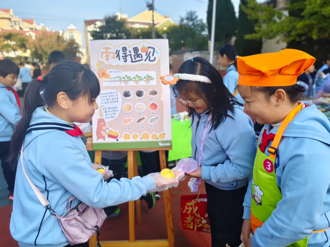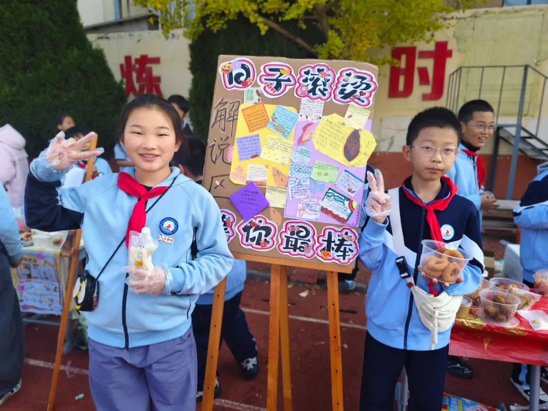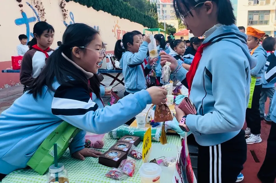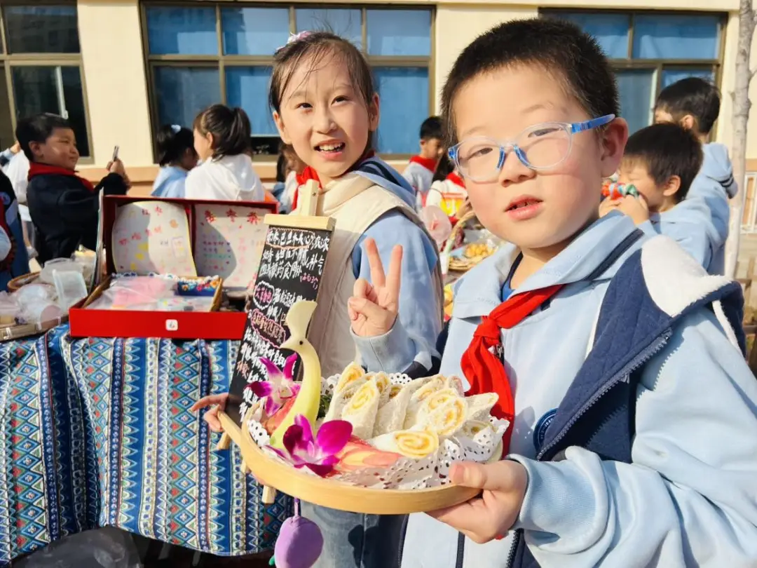 现五年级 “展销操盘手” 们全程主导,从展区规划、摊位布局到销售员培训、物资筹备,每一个环节都安排得井井有条。他们制作的导览手册、产品说明书和预热宣传片,让展销会更具专业性,活动结束后还认真撰写总结报告,为后续活动出谋划策。