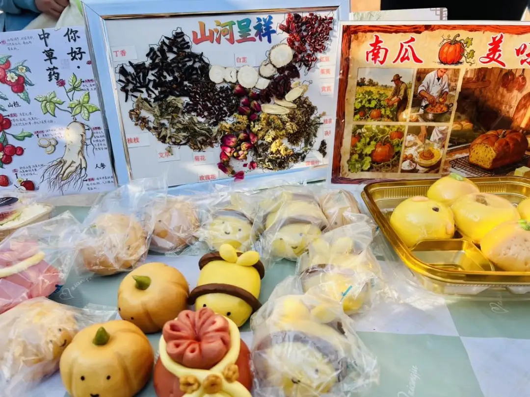 三年级 “美食小厨神” 的展区香气扑鼻,玫瑰小方糕、菊花茶饮等百草轻食免费试吃;四年级 “保健小达人” 化身健康宣讲员,详解足浴药包、陈皮润喉糖的养生功效,把健康知识传递给更多人。