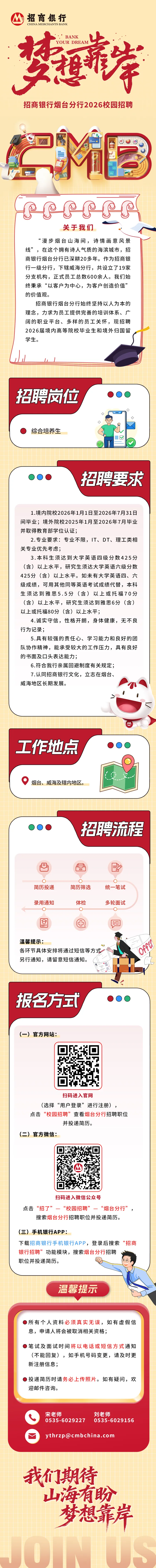 “梦想靠岸”招商银行烟台分行2026春季校园招聘