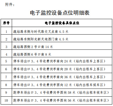 威海站前疏站路西侧2号口至6号口之间相关区域以及威海站内出租汽车待租区(运用的电子监控设备点位详见附件)。